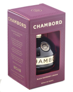 Made from special duplex purple laminated to pink vat-dyed board and featuring gold stamping and silk screening, this sumptuous folding carton perfectly captures the top-shelf elegance and luxury of the Chambord brand. The gold elements add a sense of royalty while the contrast created by the exposed pink board edges demonstrates a surprising attention to detail.