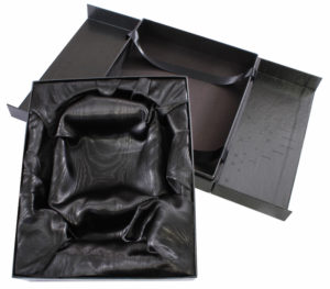 Taking influence from HBO’s acclaimed action drama Game of Thrones, this rigid box adds a dramatic flare to the unboxing experience: ribbons, secured under the interior hinged lids, lift the inner tray upon opening—adding movement and putting the contents on a “pedestal”. Upon re-closure, the tray slides inwards while hidden edge magnets seal the box with a crisp snap.