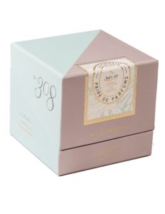 Sold in Anthropologie, a high-end retail store for women, the Leitmotiv fragrance required high-quality packaging to match the expectations of the store’s discerning shoppers. A luxurious rigid box was the perfect choice. With gold foil stamping and a unique hinge opening, this setup box stands out on the shelf, conveying a lightness and elegance that appeals to the brand’s target market. Inside the pack, the perfume bottles are further branded and protected by paperboard sleeves that are printed and foil stamped to match the outer wrap.