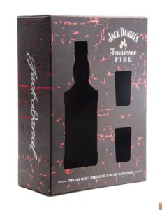 Simulating the look of fire and charcoal, this Jack Daniels carton features special holographic red foil stamping and extensive embossing. To achieve the fiery effect, the carton required a whopping seven passes including silk screening, two stamping passes, and embossing in addition to diecutting and folding/gluing. Yet all this work certainly paid off: when rotated in light, the red foil reflects a myriad of different shimmering colors—much like real fire.