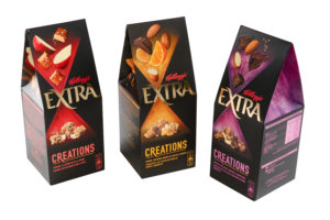 In a category dominated by traditional rectangular cereal boxes, Graphic Packaging International’s EXTRA Creations design makes a huge impact. First there’s the gable top structure that looks like nothing else in the cereal aisle. Then you have the graphic design. An elegant black backdrop highlights a code color—yellow, red, or purple—and appetizing photos of ingredients and cereal clusters. Additionally, gold foil stamping on the brand name, EXTRA, creates a reflective surface that catches the eye while offering an additional premium element to the design. Spot high-gloss coating with embossing for the ingredient images draws further attention to the package. The only thing that isn’t “extra” about this design is its footprint on shelf, which is smaller and more stable than traditional cereal boxes. That means this excellent design takes up less space and packs more punch. That sounds like a folding carton of the year!