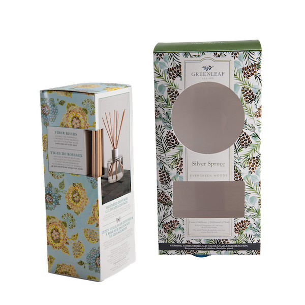 Structural design was an important component as well. After producing a variety of samples, designers chose 20pt C1S Spectro board white for the best print and protection of the product. The glass and reed diffusers required special strong housing along with a reinforced tuck flap on the bottom to protect the product, with RRD’s folding and gluing equipment finishing the print job in one pass. Cartons are then packed flat by version, labeled, and skid packed to ship to the client. Today, these beautifully printed products are changed seasonally with approximately a dozen fragrance options, giving consumers an award-winning package and fragrance.