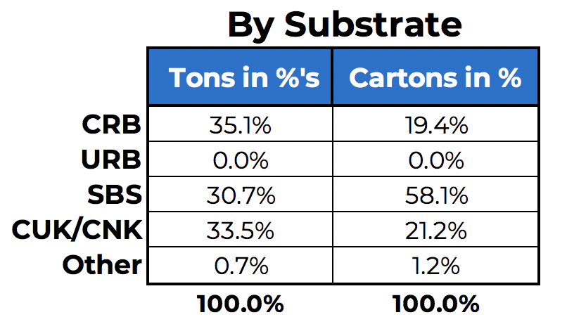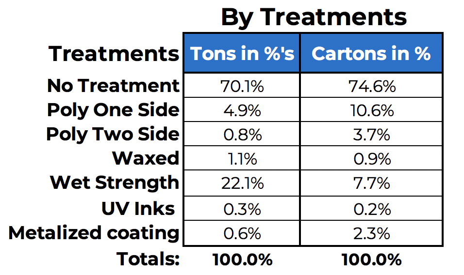 • Clearly regular/standard  paperboard with no treatment is the overwhelming use for Frozen Foods