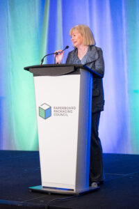Rachel Kagan, Executive Director of the Paper & Paperboard Packaging Environmental Council (PPEC), brought a Canadian perspective to the room, one that continues to accelerate regulatory influence across North America. Her briefing highlighted the ongoing shifts in extended producer responsibility, recycled-content mandates, and the development of carbon-focused policies.