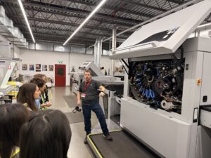 She spoke about the company’s strength, rooted in product diversity and an unwavering customer focus. As Doree put it, “We are a one-source solution”—and our members saw that in action. The tour showcased every area of production, including labels, folding cartons, corrugated materials, protective packaging, shipping supplies, and digital printing and packaging.